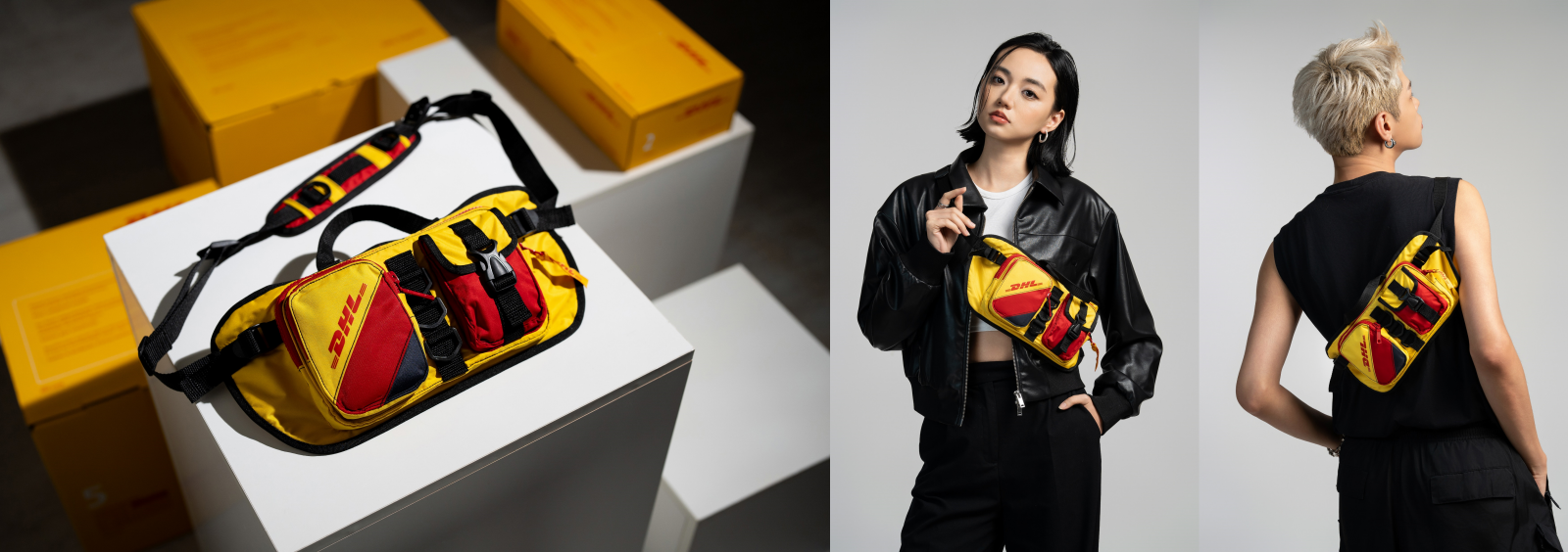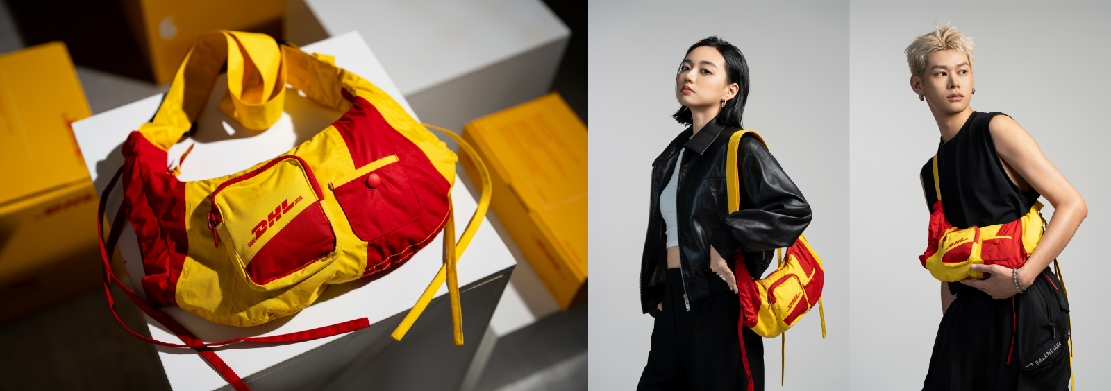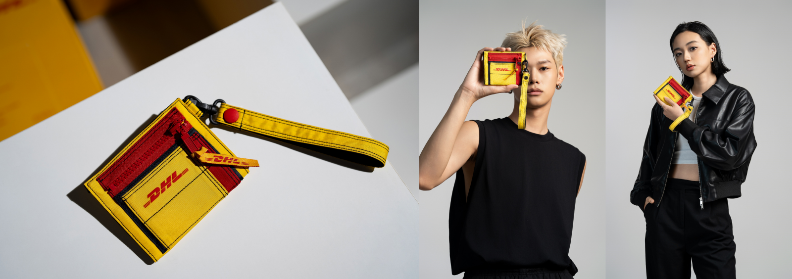 The DHL x Angus Tsui collaboration resulted in a limited-edition series of three upcycled accessories — the DHL Upcycled Voyager Shoulder Bag, the DHL Upcycled Versatile Sling Bag, and the DHL Upcycled Journeyer Wallet — designed for longevity and everyday practicality. Features such as contrast linings, modular compartments, and durable construction techniques reflected circular values like adaptability and extended use, while showcasing Angus’ technical precision and creative restraint.