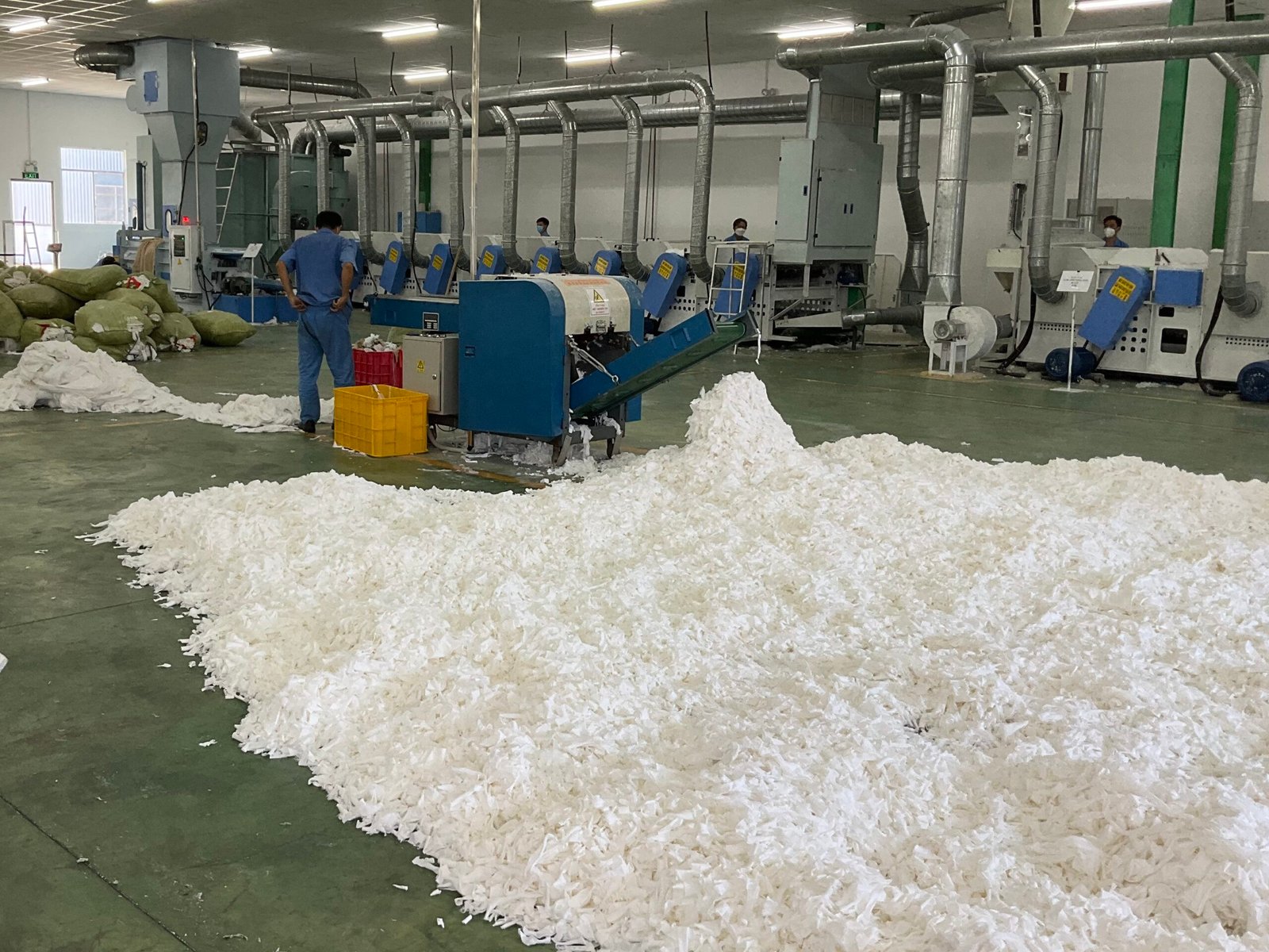 - Fibre-to-Fibre Recycling (highest value): This consists of turning the materials/products into fibres, and then into yarns and fabrics. These can be used to make new products like garments and furniture.