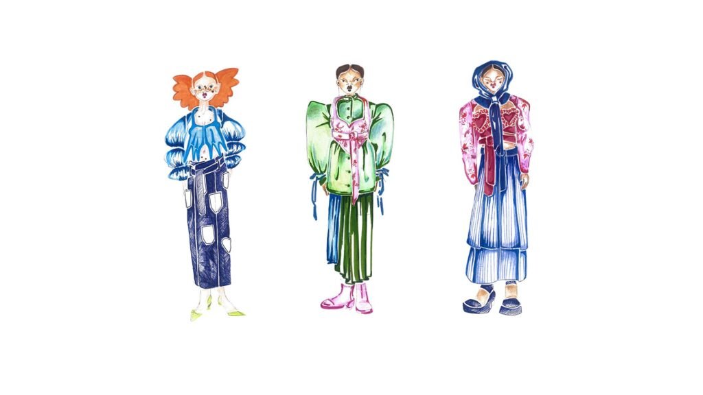 Lili 的「Redress 設計大賽」 系列 “To love Poetry’s flying circus angels.” 慶祝天使般的能量和愛的氛圍。該系列由二手古董服裝和窗簾製成,適用於各種尺寸,鼓勵長期穿著。模組化、可反轉的服裝允許轉換功能,例如可以將襯衫變成袋。所有的剪裁餘料都用於製作泰迪熊,最大限度地減少了面料浪費。